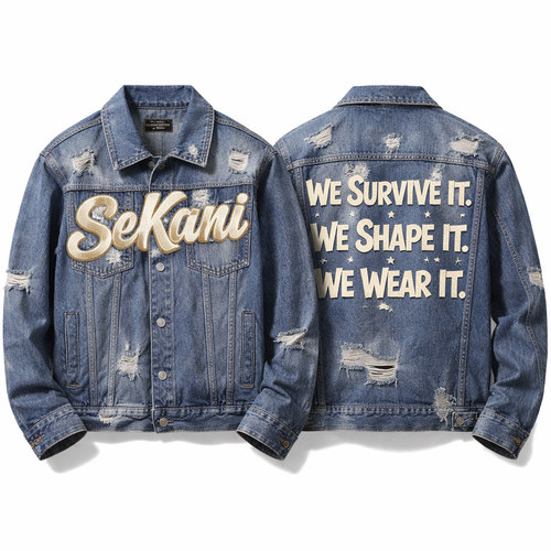 SeKani written on the front across the chest On the back my slogan will read “We Survive It. We Shape It. We Wear It.” ...