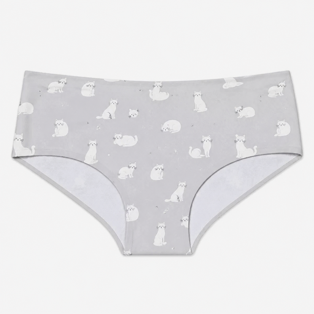 A Female Dress design, suitable for Spring, in Classic style. Kids underwear. Gray with white cats on them. Ultra soft, ...