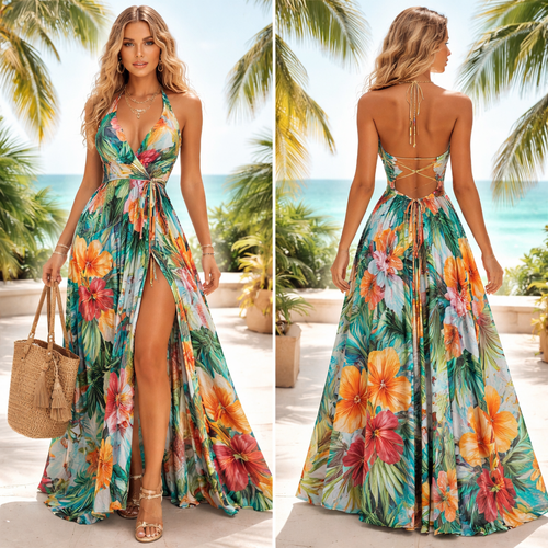 A Dress design, made of Silk, suitable for Spring. TM fashion aesthetics. Current season is Spring in TM.
