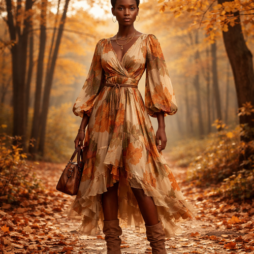 A Dress design, suitable for Fall. ZW fashion aesthetics. Current season is Autumn in ZW.