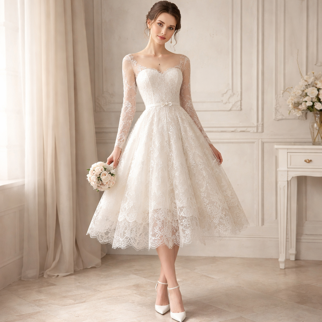 Bridal lace knee level gown design