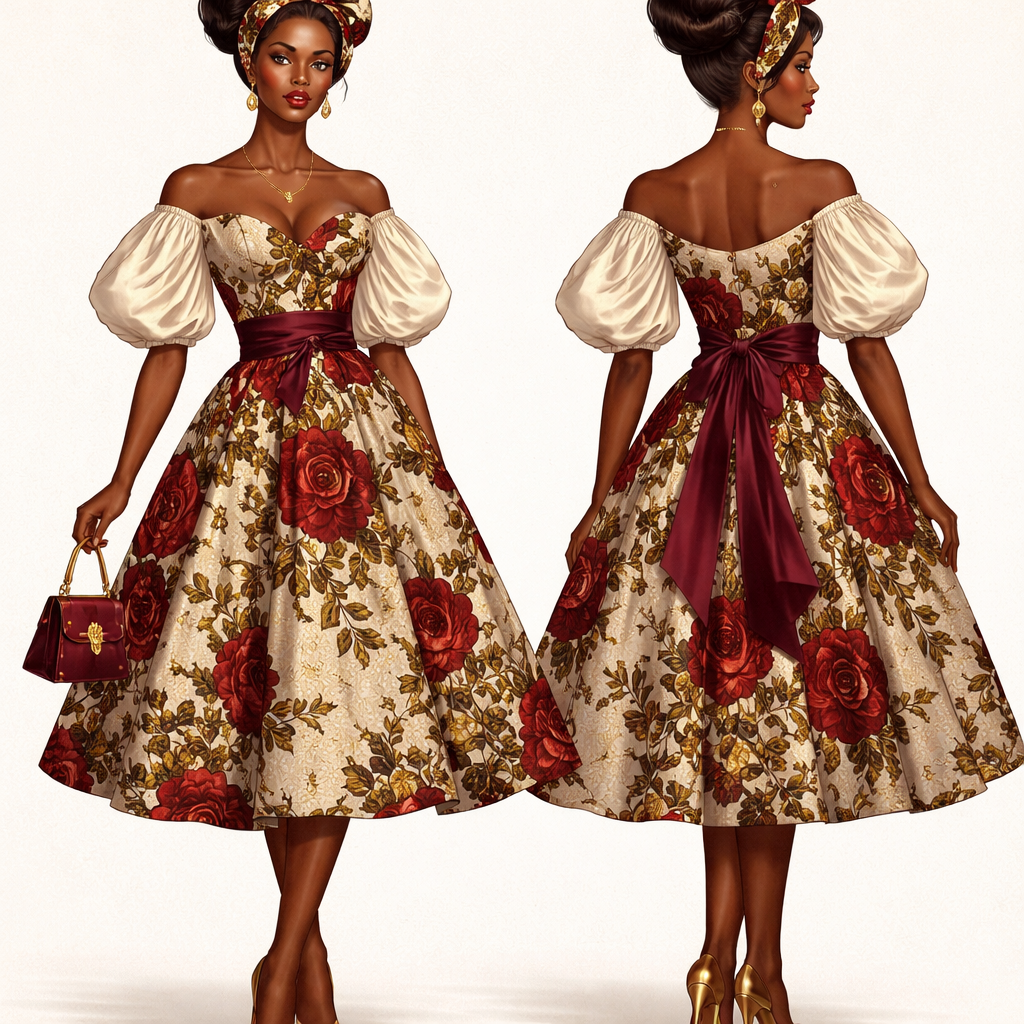 African women outfit, vintage style, show front and back