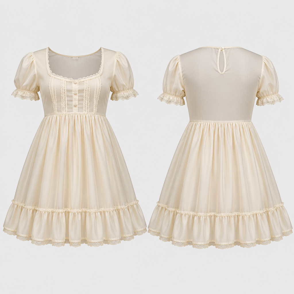photorealistic fashion design, Baby doll dress, vintage style, just the design no text, show front and back