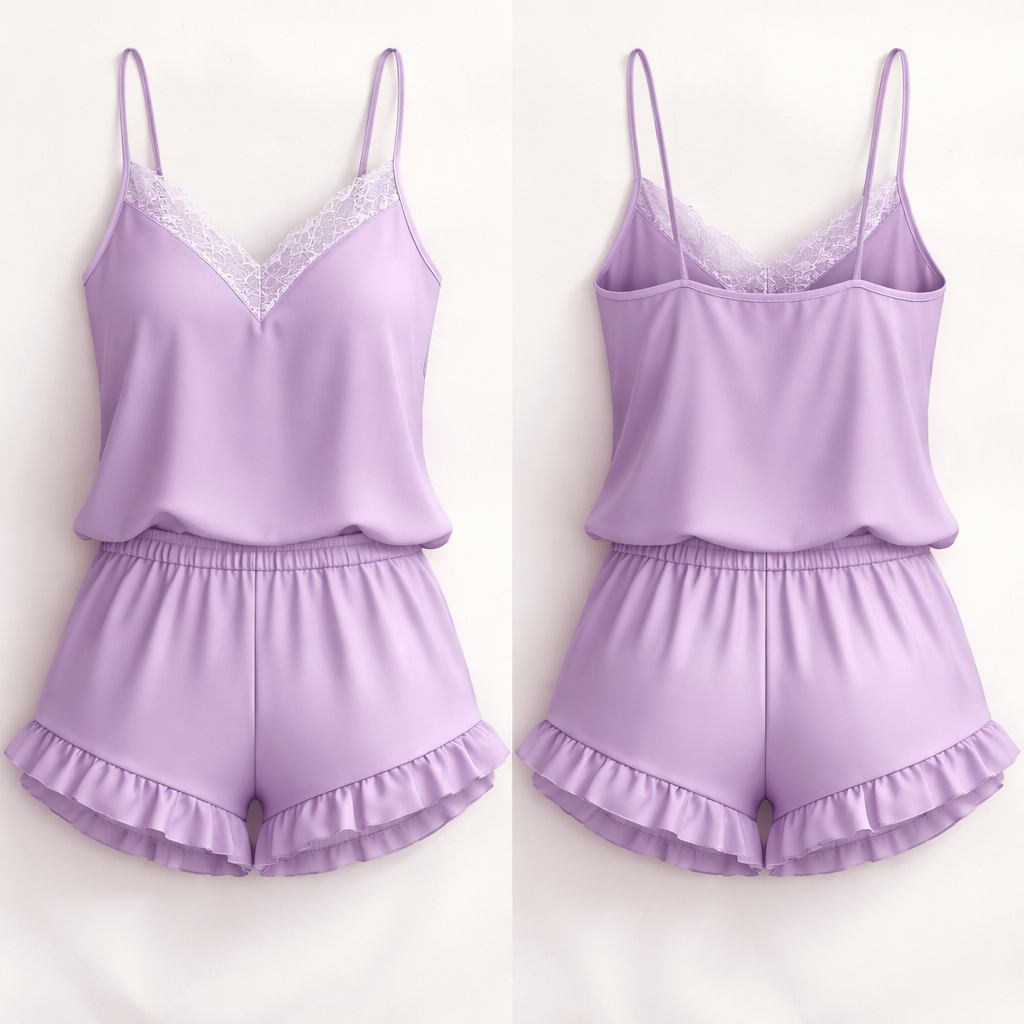 Make a cute purple pj set but remove the bow on the edges , show front and back