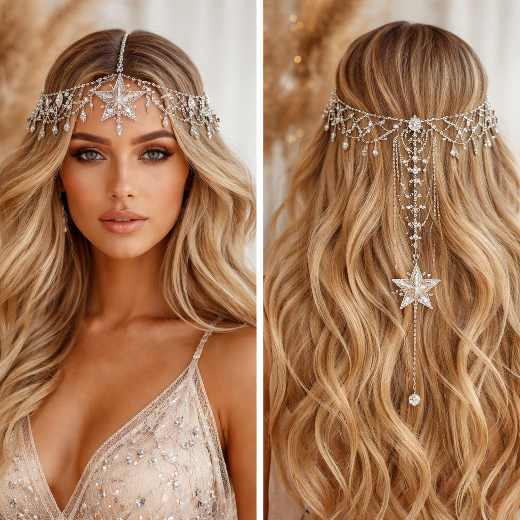 Head chain. Bohemian. Star , glamorous style, show front and back