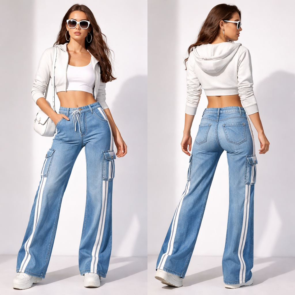 60’s new fashion design for stylish women jeans  looks , athleisure style, show front and back