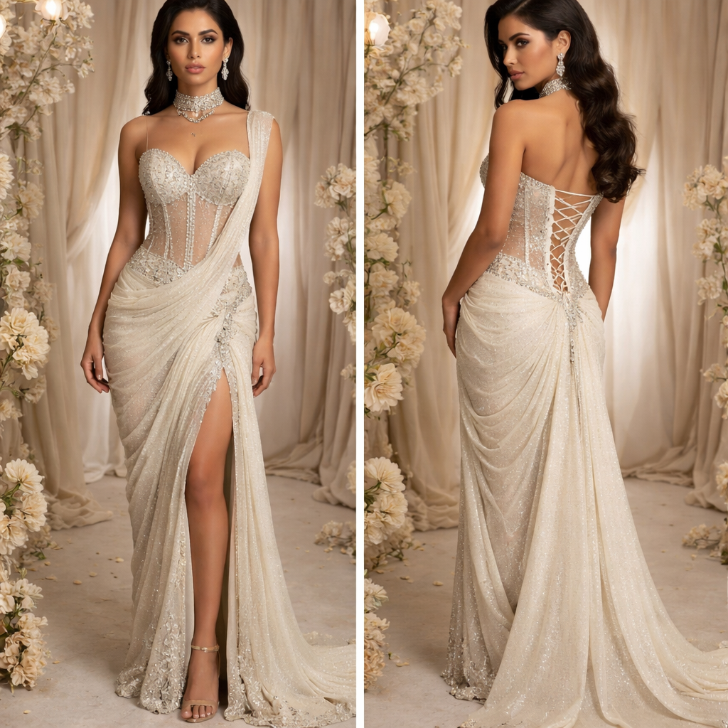 Corset saree , elegant style, show front and back