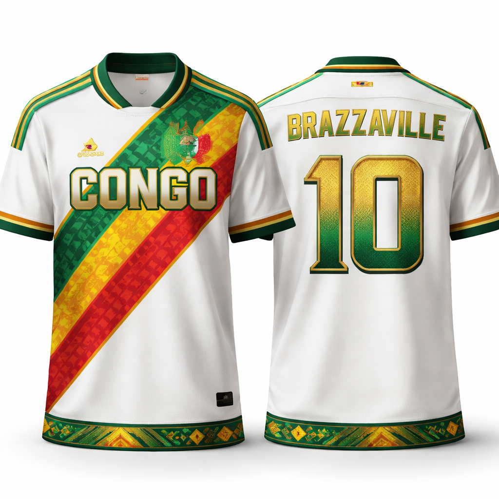 a football jersey for Congo (Brazzaville), well-made street wear that stands out from the jerseys we are not used to seeing, elegant style, show front and back