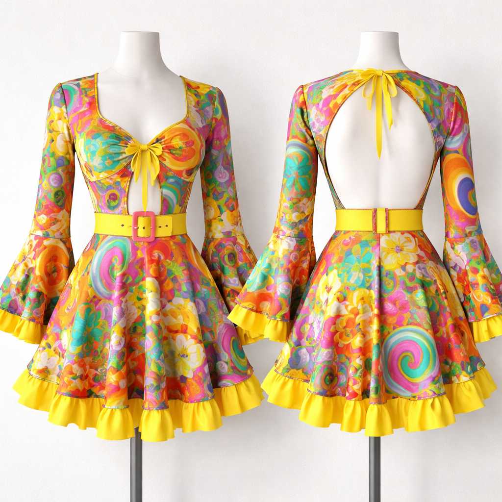 Funky dress, vintage style, show front and back