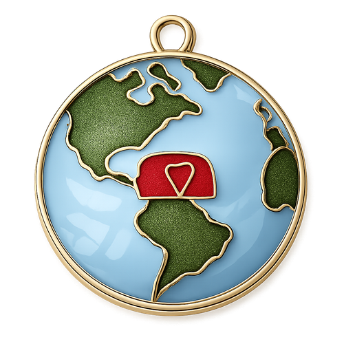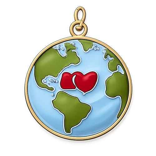 Create an enamel charm that is a globe with a red heart where the state of Kansas in the United States is