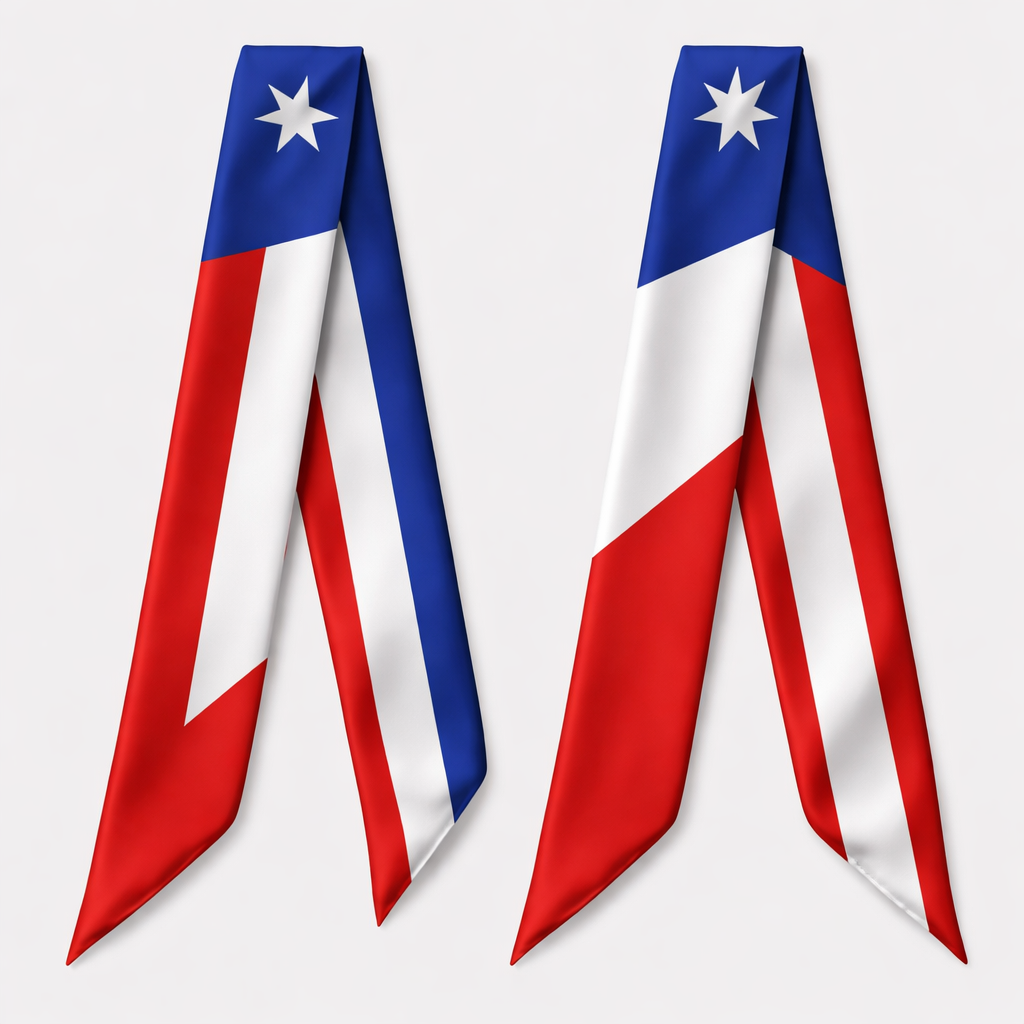Design a silk twilly using the Chile national flag. Keep it longitudinal stripes. With no logos just the colors , classic style, show front and back