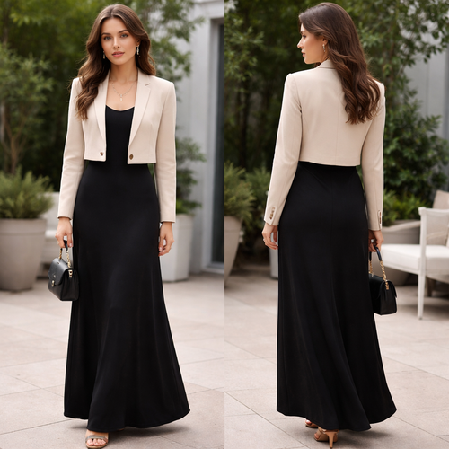 Elegant blazer and long black dress