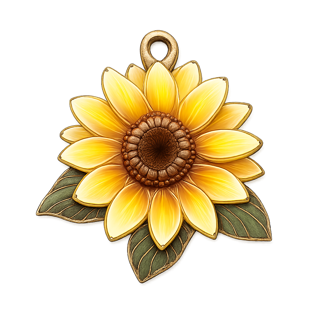 Design a 1 inch enamel charm that is a sunflower , classic style
