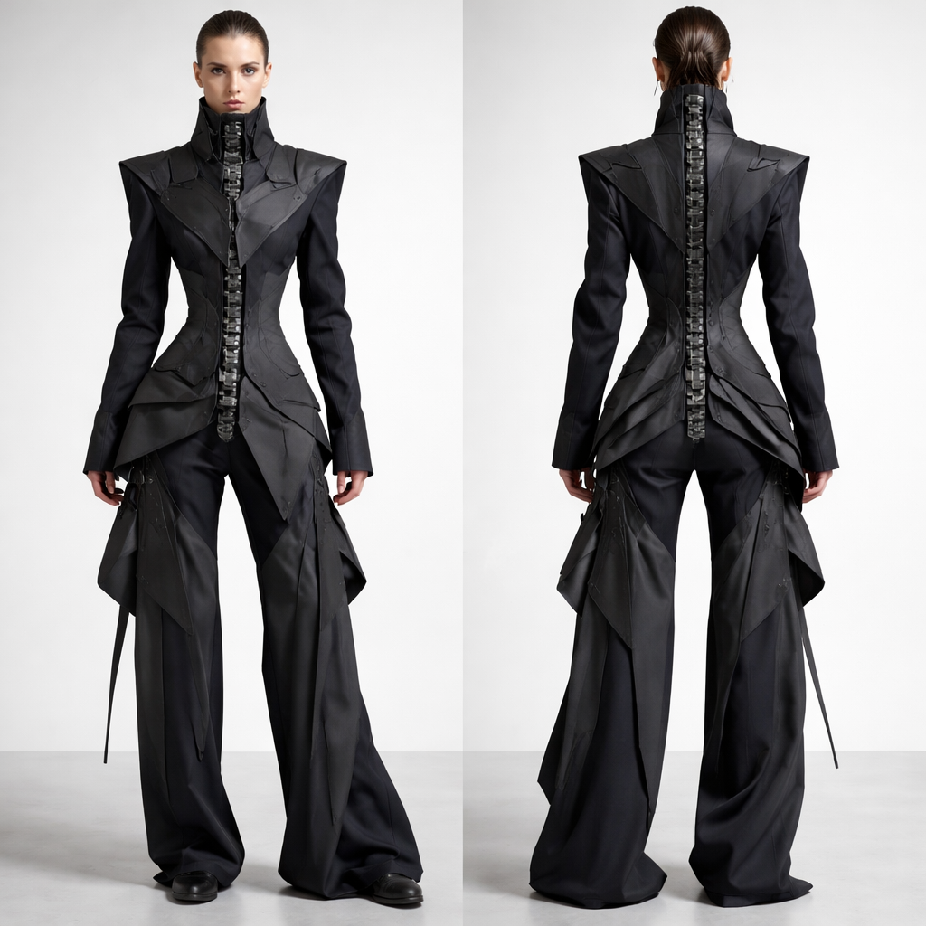 LOOK 1 — SPINE Concept focus: Structure / Origin / Direction Trousers Architectural extraction Central structural line L...