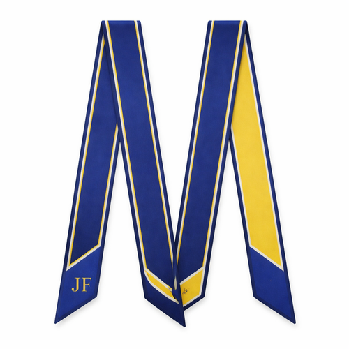 Design a twill scarf that is 5 x 86cm with oblique edges. Have it be mostly royal blue and yellow. Keep it super simpl...