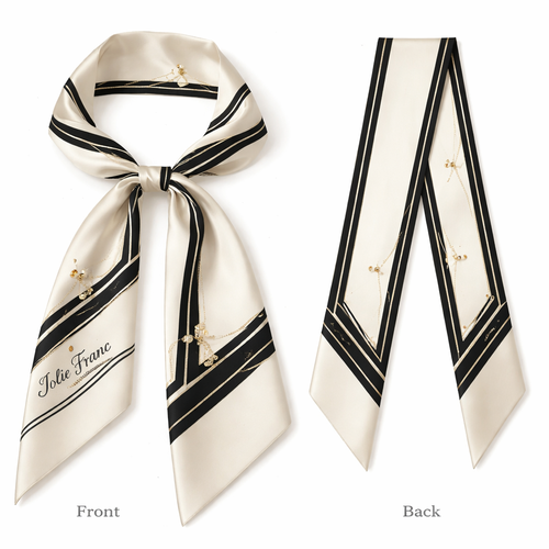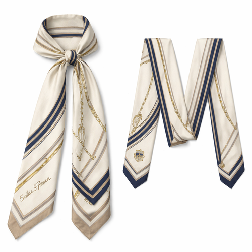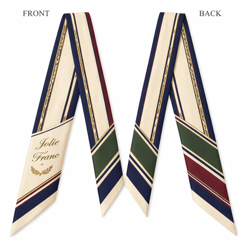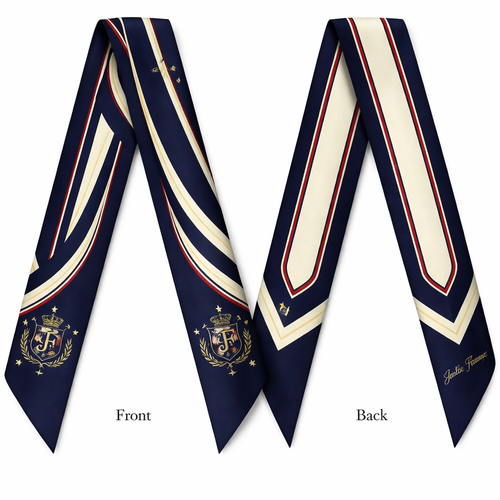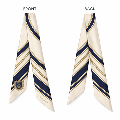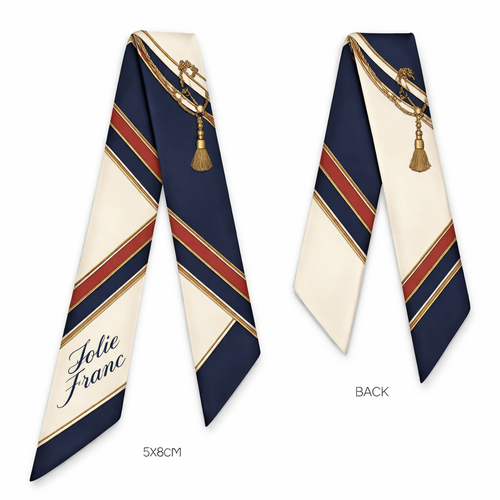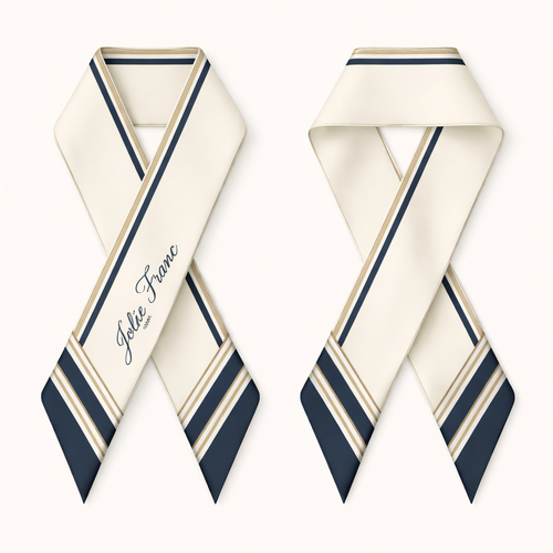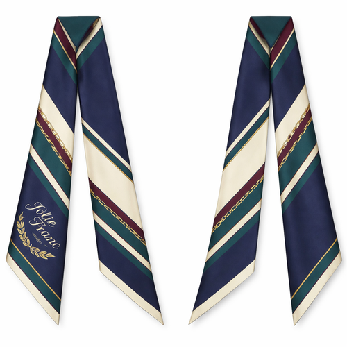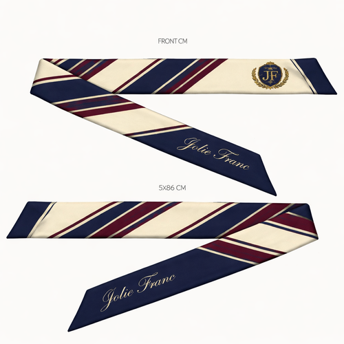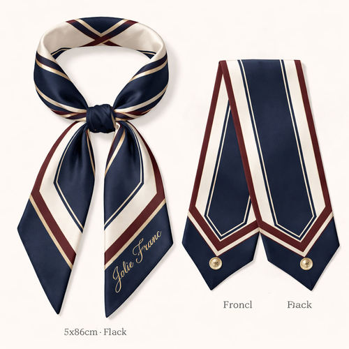 Design a silk scarf thanks 5x 86cm to be wrapped on the handle of a purse. No logos or words. Create a tailored navy pa...