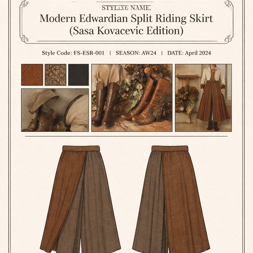 DESIGN CONCEPT Modern Edwardian Split Riding Skirt — Sasa Kovacevic Edition Mood: Rustic, conceptual, artisanal, sligh...