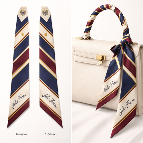Design a silk scarf thanks 5x 86cm to be wrapped on the handle of a purse. No logos or any school relation but a colleg...