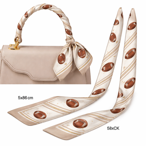 Design a silk scarf thanks 5x 86cm to be wrapped on the handle of a purse. No logos or any school relation. Make it foo...