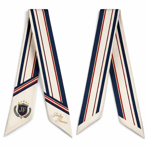Design a silk scarf thanks 5x 86cm to be wrapped on the handle of a purse. This is for a collegiate graduation ceremony...