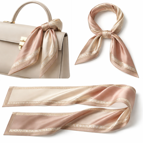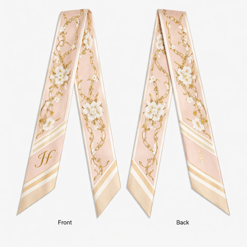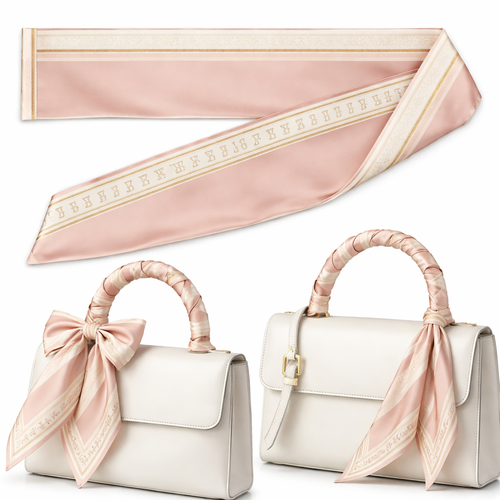 Design a silk scarf thanks 5x 86cm to be wrapped on the handle of a purse. • Silk base: Ivory • Pattern: Single thin c...