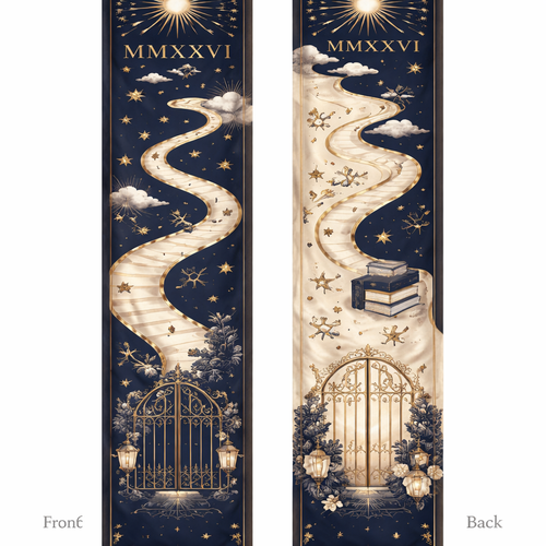 Design a silk scarf thanks 5x 86cm to be wrapped on the handle of a purse. This is for a collegiate graduation ceremony...