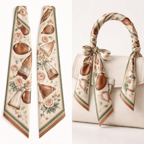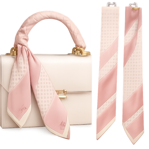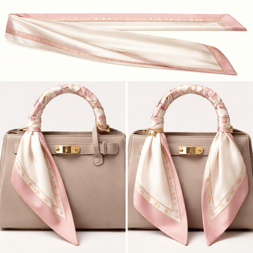 Design a silk scarf thanks 5x 86cm to be wrapped on the handle of a purse. Lean into French intellectual heritage—not u...