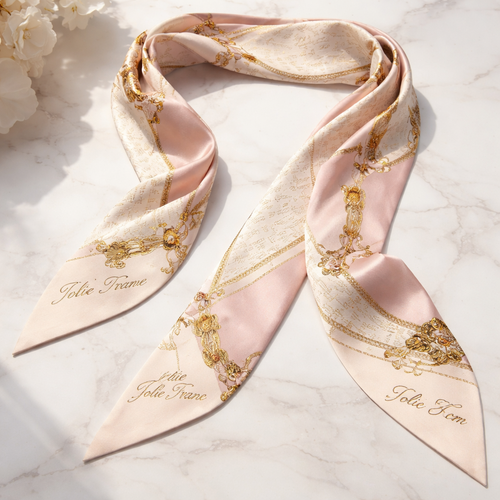 Design a silk scarf thanks 5x 86cm to be wrapped on the handle of a purse. “Jolie Franc” repeated subtly Execution ...