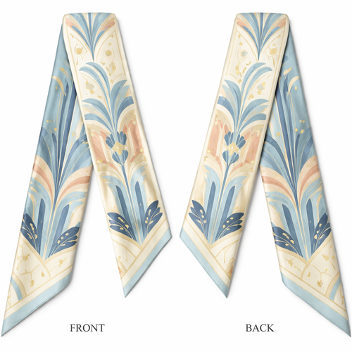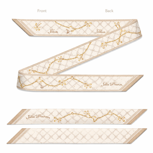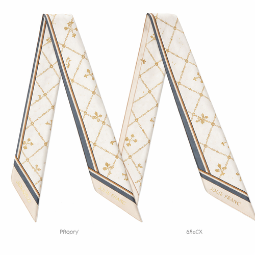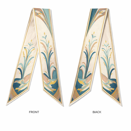 Design a silk scarf that is 5 x 86 cm with oblique edges. It will be wrapped around a handle of a handbag. That has a fo...