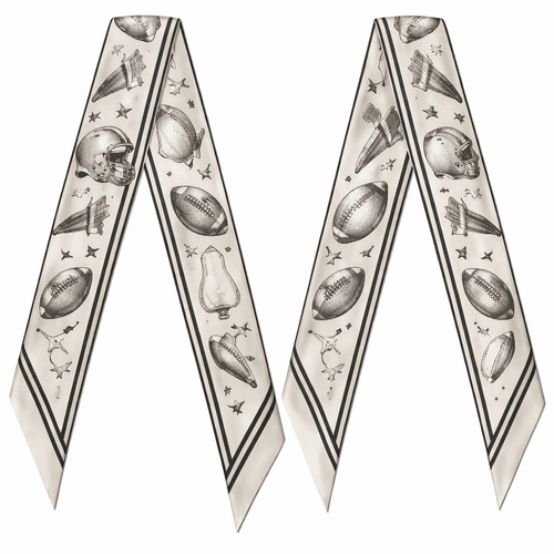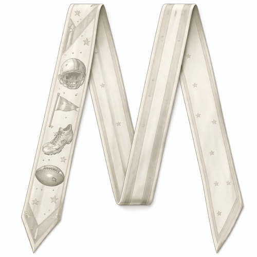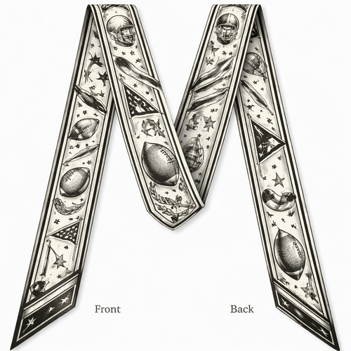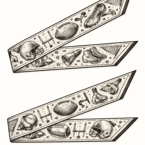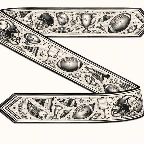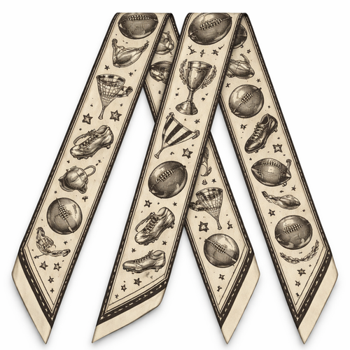 Design a silk scarf that is 5 x 86 cm with oblique edges. That has a football vibe. No colors. Keep it vintage. No words...