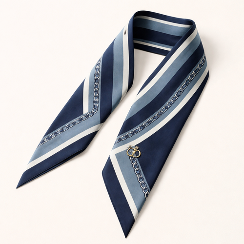 Design a 5x86cm silk scarf. Classic, elegant. Simple iconic pattern using different shades of 1 or 2 colors. Angled edge...