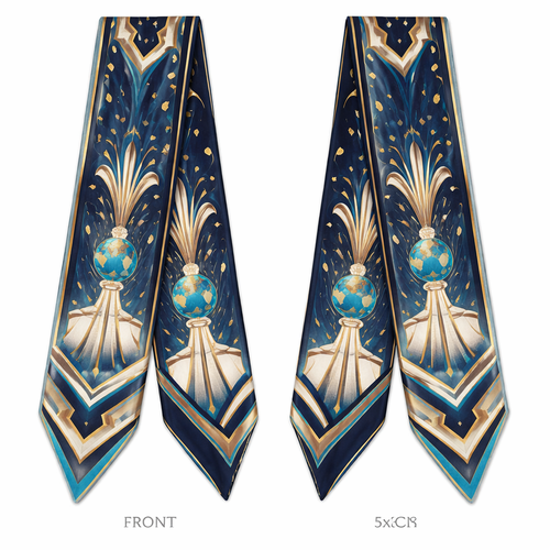 Design a silk scarf that is 5x 86cm with oblique edges. Make it an abstract fountain theme with and art deco style