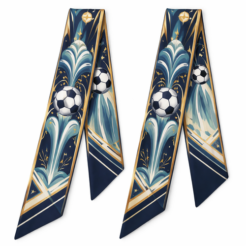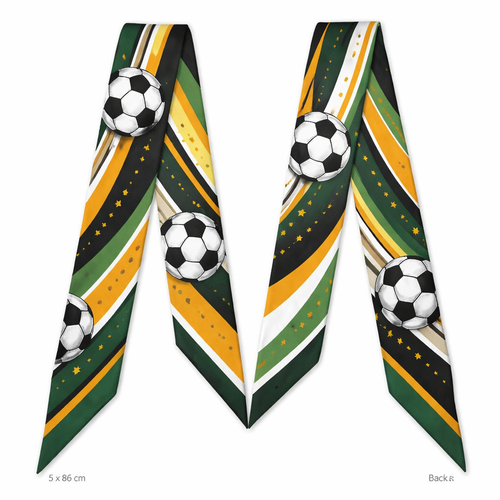 Design a silk scarf that is 5x 86cm with oblique edges. Make it an abstract soccer theme. Super simple . Make the soccer...