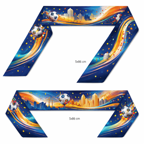 Design a scarf that is 5x86cm to be wrapped around the handle of a handbag for the World Cup 2026 no logos or words. Som...