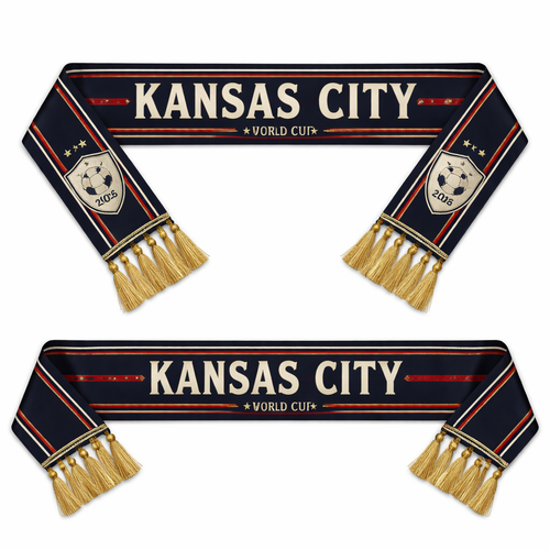 Design a silk scarf that is 5x 86cm to be a host city scarf for the World Cup 2026 for Kansas City MO. No words or logos...
