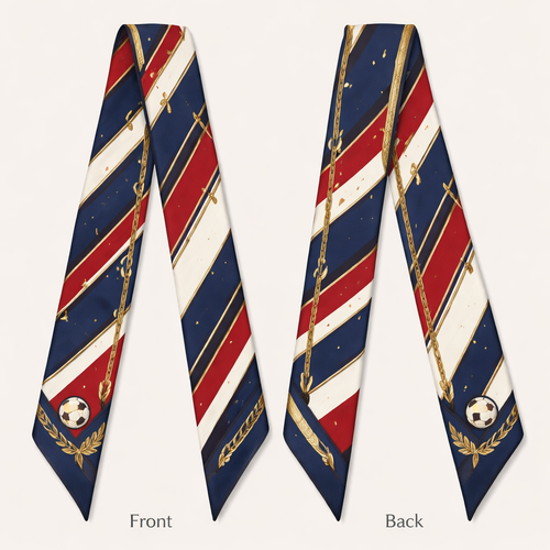 Design a scarf that is 5x86cm to be wrapped around the handle of a handbag for the World Cup 2026z no logos or words. So...