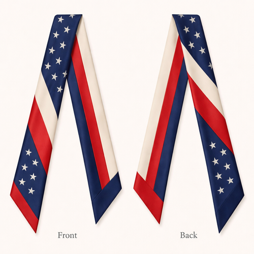 Design a silk twilly scarf that is 5x 86cm that is for the United States of America’s 250th birthday. No words or logos....