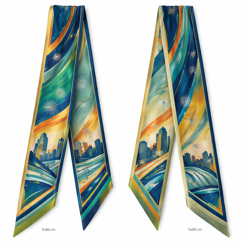 Design a silk scarf that is 5x 86cm to be a host city scarf for the workshop 2026 for Kansas City MO. No words or logos ...