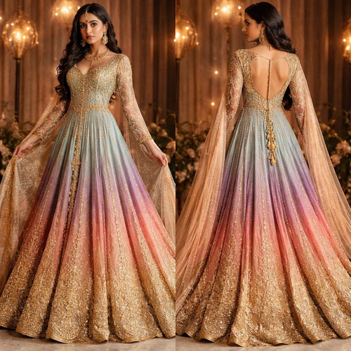 Anarkali gown, khali style. Ombre shades. Best and rare colors