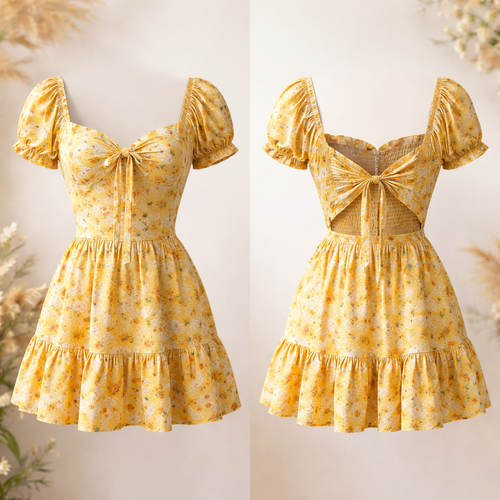 I want it in skirt and top Material is 60%then the floral should be 40% The overlapping should be like a wrap skirt