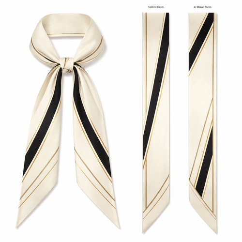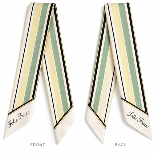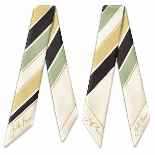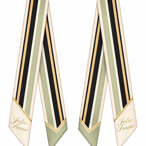 Design a 5cm x 86cm silk twilly for my brand Jolie Franc in cursive at the end tails. Use Jo Malone brand colors