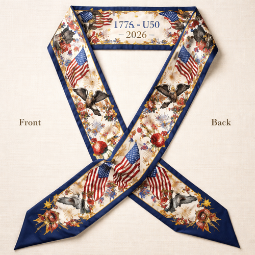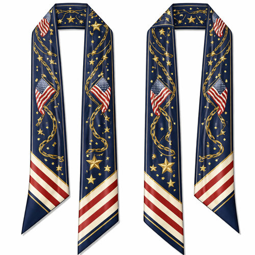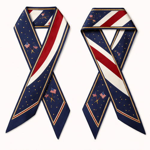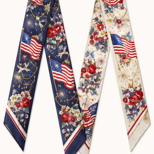 Design a silk twilly scarf that is 5x 86cm that is for the United States of America’s 250th birthday. No words or logos....