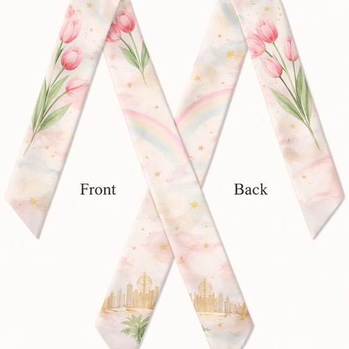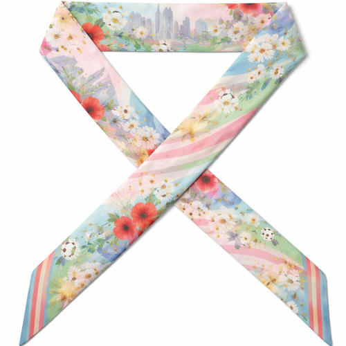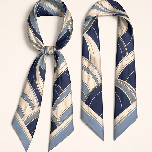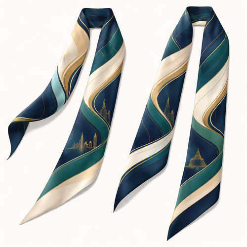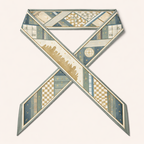 Design a silk scarf that is 5 x 86cm that wraps around a handle of a handbag Typography as Texture Vibe: Editorial, a...