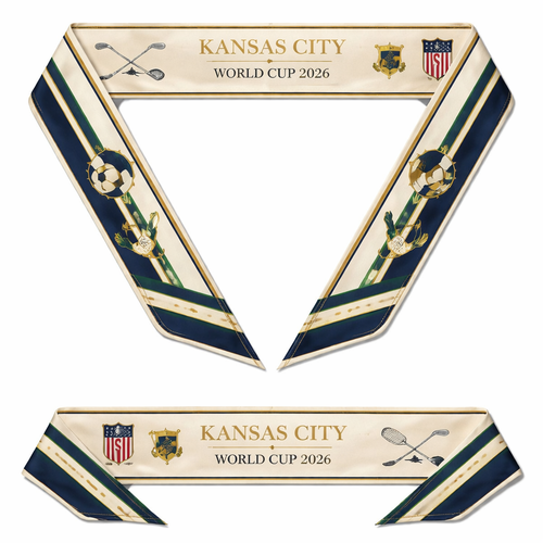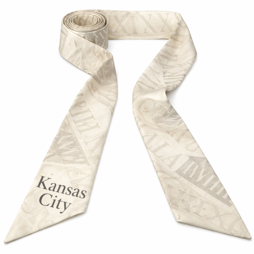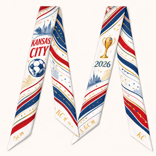 Design a 5cm x 86cm silk twilly scarf inspired by Kansas City, Missouri as a FIFA World Cup 2026 host city. A narrow, e...