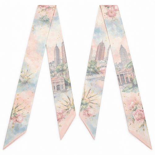 Design a silk scarf that is 5 x 86cm that wraps around a handle of a handbag Design inspired by historic country club...