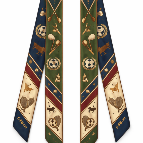 Design a silk scarf that is 5 x 86cm that wraps around a handle of a handbag American Sporting Heritage Classic Ame...