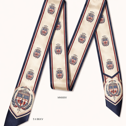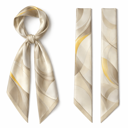 design a silk scarf that is 5x 86 cm that is heritage fashion. A refined color palette: • Neutrals + one accent • Or...