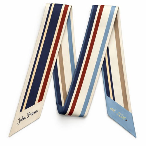 Design a silk scarf that is 5 x 86cm that wraps around a handle of a handbag for my brand Jolie Franc The Heritage Stri...