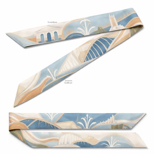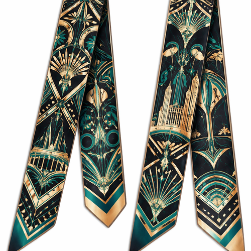design a silk scarf that is 5x 86 cm that is heritage fashion. Kansas City cues: • Fountain-inspired flow • Art Dec...