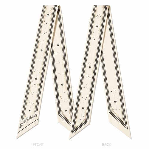 Design a silk scarf that is 5 x 86cm that wraps around a handle of a handbag Typography as Texture Vibe: Editorial, a...